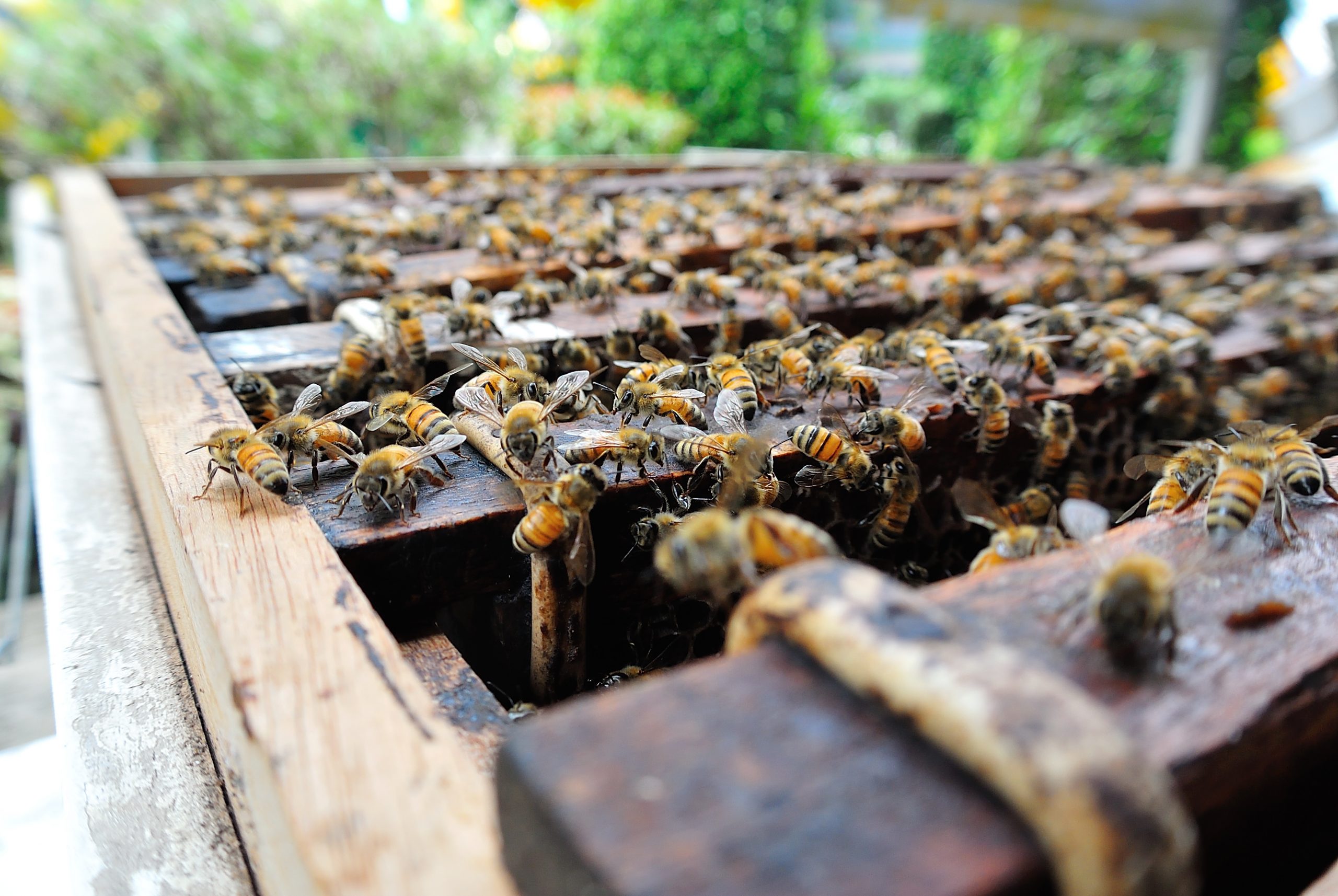 Hauck has said he’s not completely over his fear, but he’s now educated on different types of bees, and he specifically learned honeybees aren’t as aggressive as wasps or hornets. After raising them as long as he has, he hasn’t noticed much aggression while at work beneath his protective suit—he bought a smoker that can mask the scent honeybees put off when warning each other of danger, but he hasn’t had to use it at all. “Honeybees are really bred to be gentle. It’s surprising to have 50,000 bees right in front of you and only a couple might get upset, depending on what you do.”